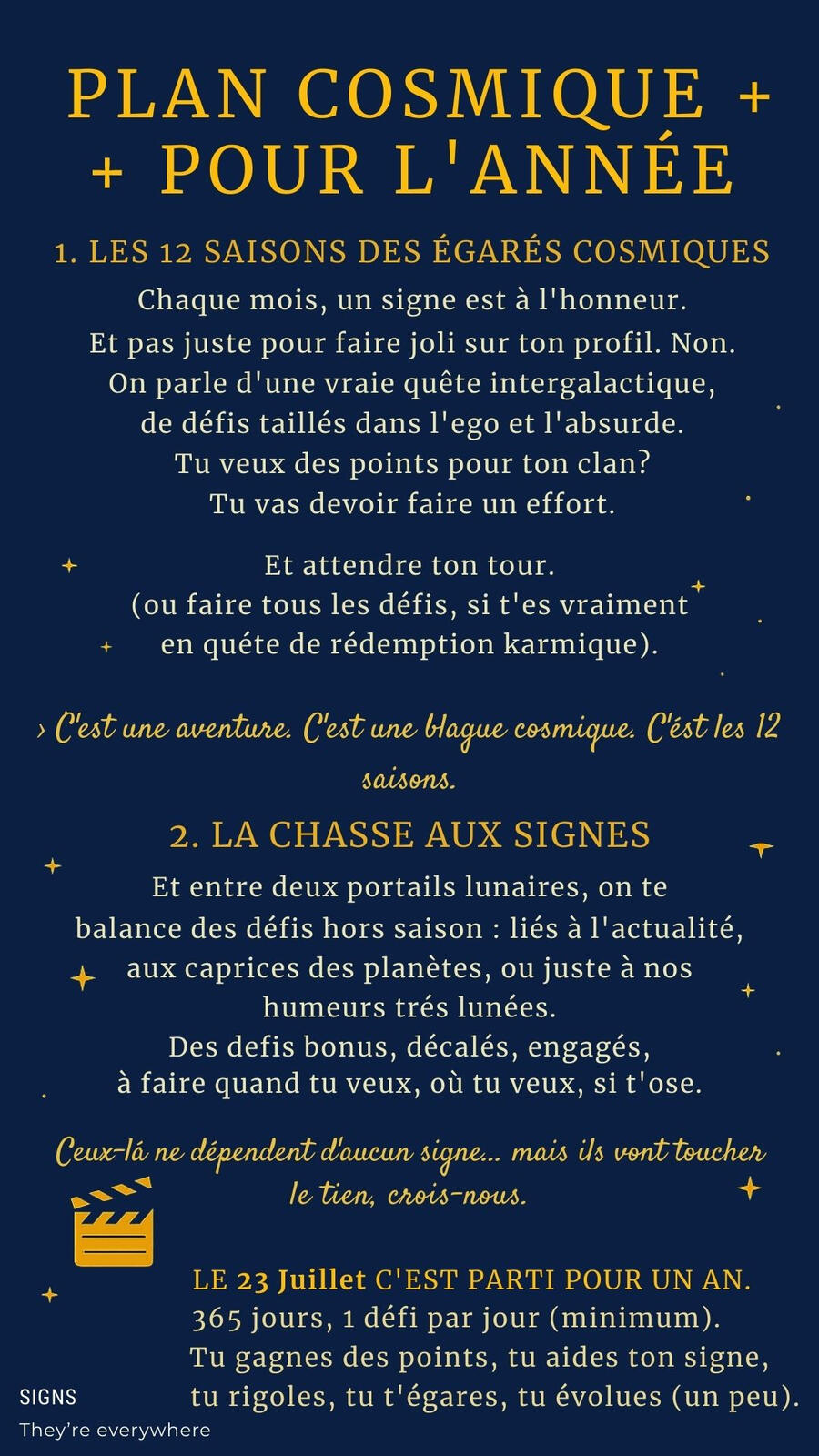 Plan cosmique SIGNS, départ le 23 juillet 2025